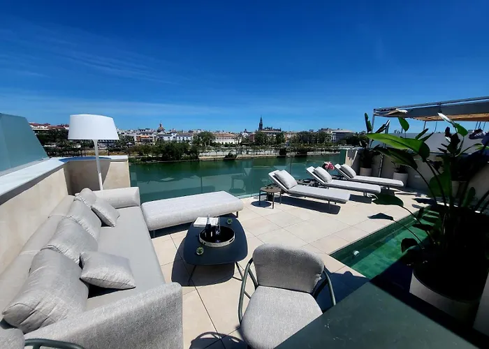 The 6-bedroom Casakary Villa Seville, located nearly a 5-minute walk from Triana Bridge, entices guests with a rooftop swimming pool as well as a solarium to relax in.